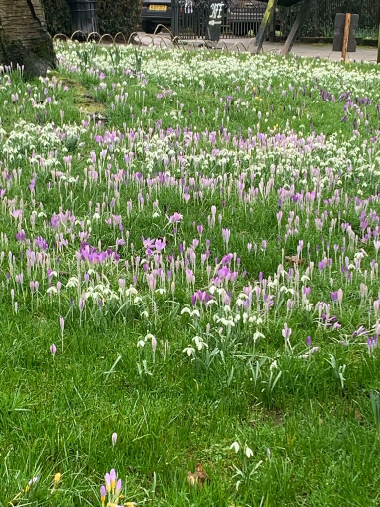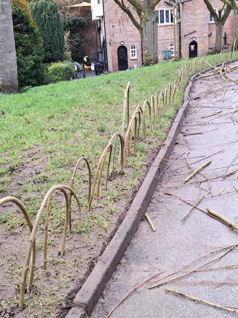 Our volunteers helped to remove a great deal of willow that was blocking water courses, and we used some of the willow to create a low fence around the bulb lawn by the Croft.